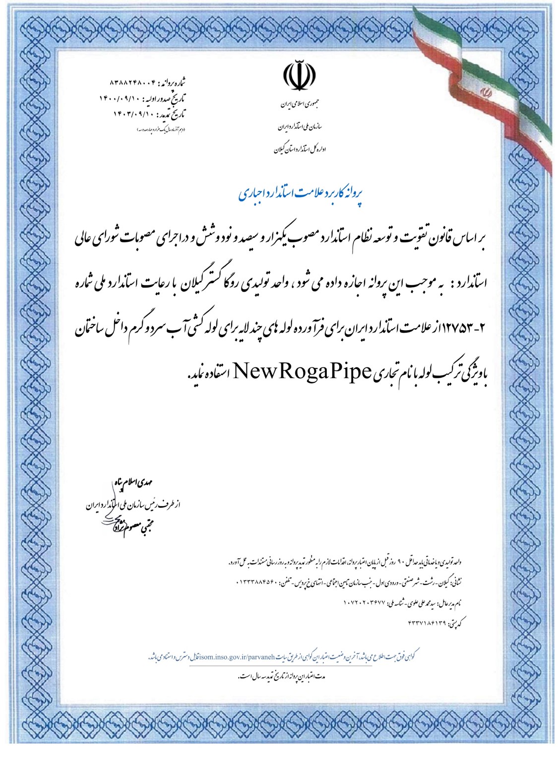 پروانه کاربرد علامت استاندارد اجباری