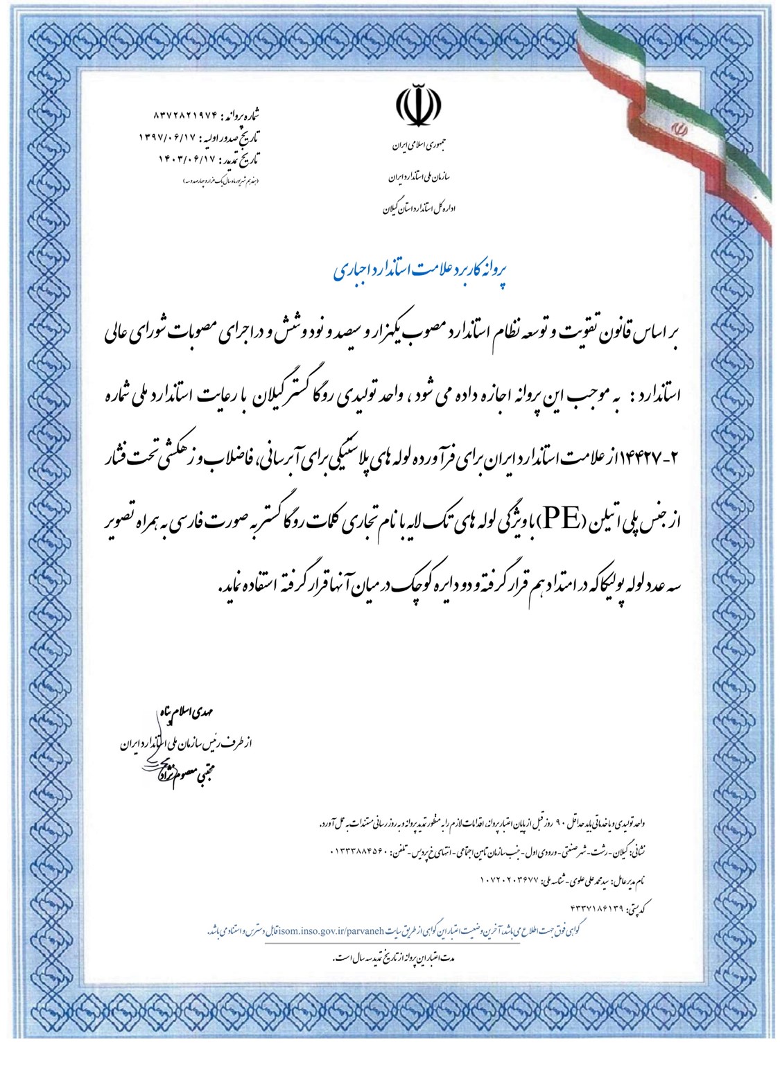 پروانه کاربرد علامت استاندارد اجباری پلی اتیلن